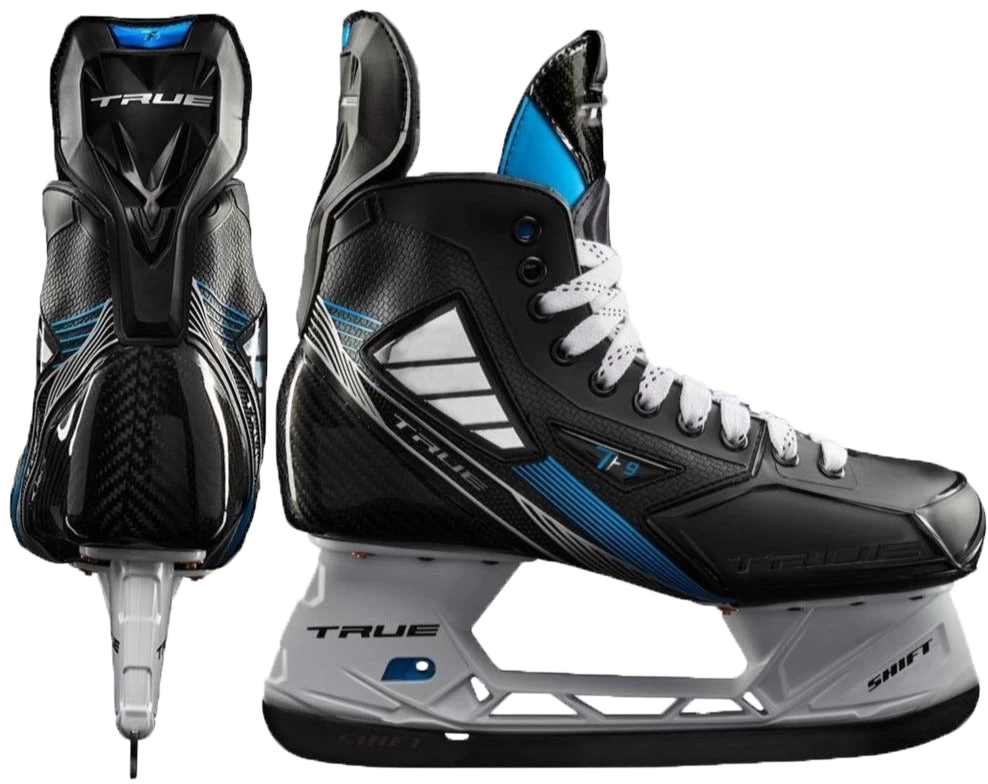 The TF9 is designed for players seeking the performance benefits and best-in-class fit that’s synonymous with TRUE skates. Through its thermoformable carbon fiber one-piece shell, versatile SHIFT holder, and adjustable tongue system with Pro-grade tongue, the TF9 skate delivers elite performance and best-in-class fit.